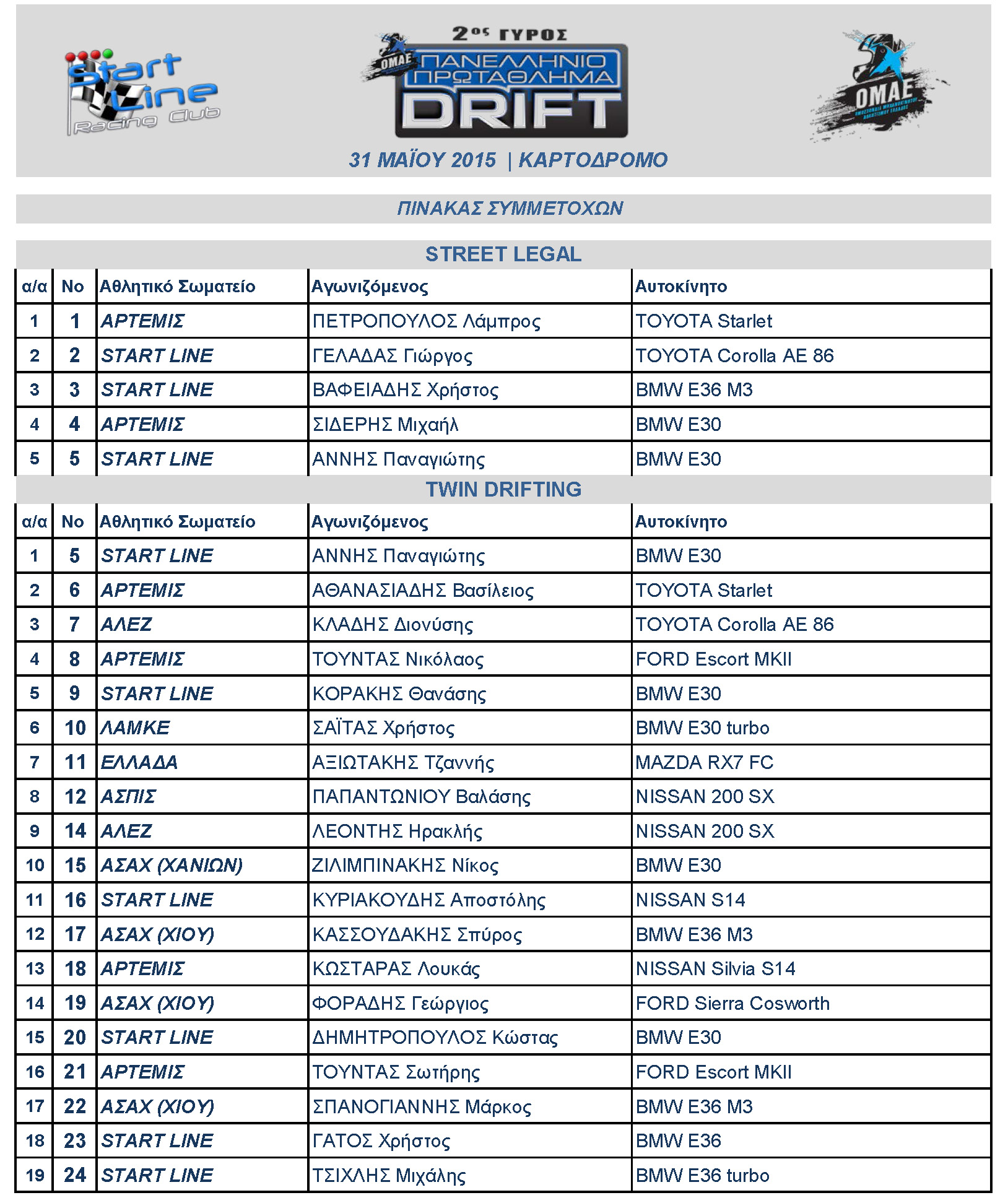 Στις 31 Μαΐου το αναγνωρισμένο Αθλητικό Σωματείο START LINE διοργανώνει τον 2ο αγώνα για το Πανελλήνιο Πρωτάθλημα DRIFT.